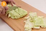 キャベツは色紙切りにする。
