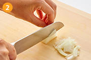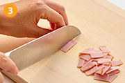 ロースハムは長さ2cm・幅1cmほどの短冊切りにする。