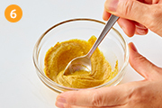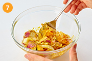 (4)の粗熱が取れたら、ロースハムと(6)の調味料を加え、よく混ぜ合わせたら完成。