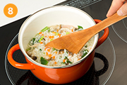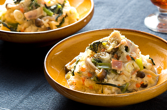 残りご飯と冷蔵庫の野菜で作れる冬にオススメの簡単リゾット。豆乳の優しい味わいと、しょうがで体が温まります。
