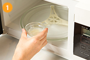ゼラチンにスプーン2杯程度の水を加え、電子レンジで溶かす。