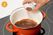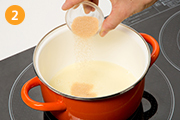 火を止めたら、バニラエッセンス・ゼラチンを加えて、粗熱をとる。