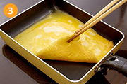 フライパンにサラダ油をひき、溶いた卵を薄焼きにする。