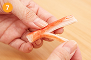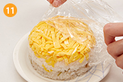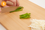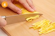 薄焼き卵を細切りにして、錦糸卵を作る。