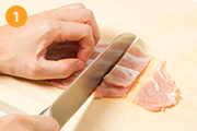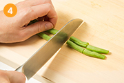 いんげんは、へたを切り落とし、3cm程度の長さに切る。