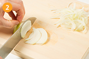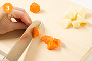 じゃがいも、にんじんは皮をむき、一口大に切る。