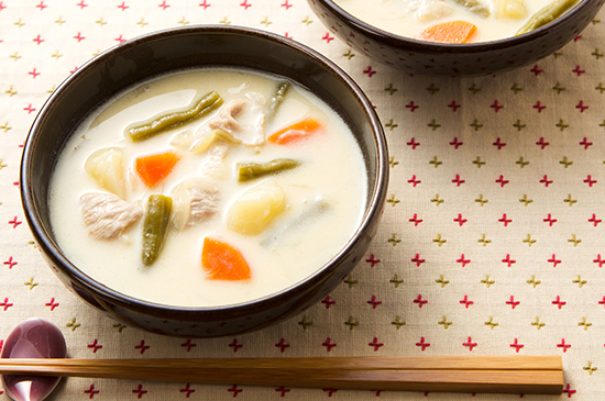 シチュー風、野菜たっぷり・あったかメニュー♪カロリーが高くなりがちなシチューですが、風味そのまま・低カロリーに。