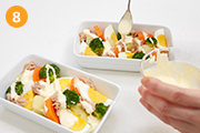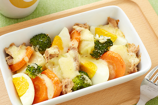 カラフルな具材で手間なく豪華な1品。グラタンソースの代わりにマヨネーズを使って簡単に!