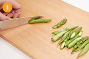 アスパラは歯ざわりを残してゆでましょう。豆腐と調味料をよく混ぜ合わせることがポイント!