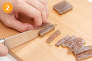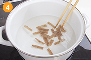 こんにゃくは3~4cmの長さの、薄い短冊切りにする。