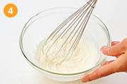 ボウルにヨーグルト・レモン汁・砂糖を入れ、よく混ぜておく。