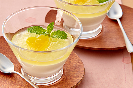 ヨーグルトムースとゼリーの2層でオシャレなひんやりデザート!ゼロカロリーゼリーを使って、低カロリーなのに満足感が得られる1品に。