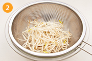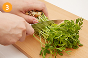 豆苗は根を落とし、もやしの長さに合わせて切る。