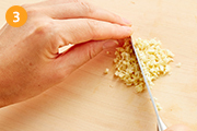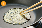 フライパンにオリーブオイルを熱したら、にんにくを炒める。
