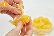 夏みかんは小房から取り出し、実を粗くほぐす。