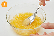 (1)に水を大さじ1加え、スプーンなどで軽くつぶして果汁を出す。
