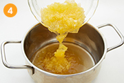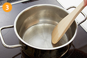 鍋に水を大さじ4と粉寒天を入れたら、弱火にかける。沸騰したらさらに2分間加熱する。