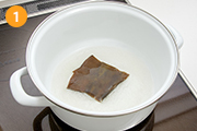 鍋に水150ccと昆布を入れ、中火にかける。