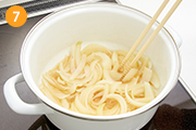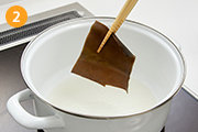 沸騰したら、昆布を取り出す。