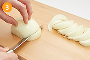 玉ねぎは1cm幅のくし切りにする。