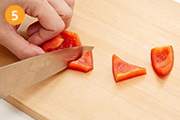 赤パプリカは小さめの一口大に切る。