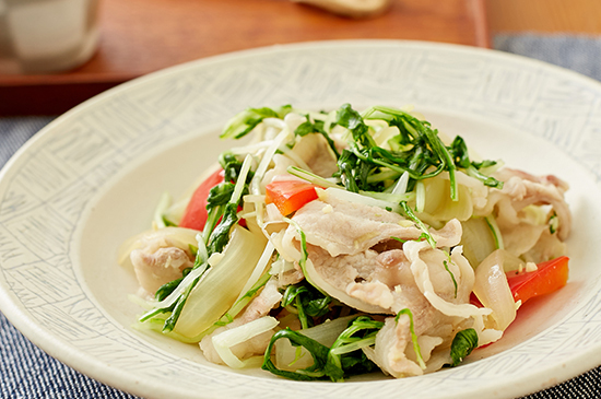 食欲そそる!ボリュームたっぷり☆豚肉と豆苗のカレー炒め