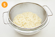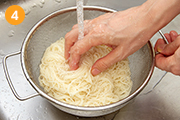 ゆで上がったそうめんを、流水で洗って冷ます。
