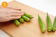 オクラのうぶ毛が気になる場合は、オクラを板ずりする。