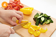 トマト・きゅうり・パプリカを大きめの乱切りにする。