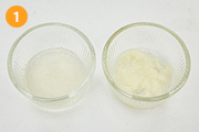 ※水でふやかしたものはぶどうゼリー用、牛乳でふやかしたものはヨーグルトゼリー用
