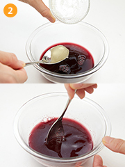 ジュースはぶどうジュースのほか、オレンジジュース、にんじんジュースなどでもきれいです。ジュースの種類によって、固まらない場合があります。