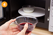 (2)と(3)を、500Wの電子レンジで40秒加熱する。