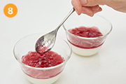 それぞれのゼリーを器に入れたら、冷蔵庫で約1時間冷やす。