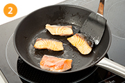 フライパンに油を熱したら鮭をのせ、片面ずつそれぞれ2分程度焼く。