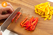 ピーマンは縦に薄く切る。