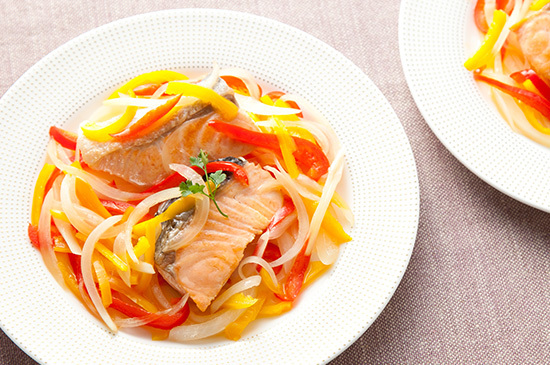 野菜たっぷりサケのマリネ