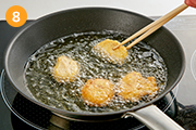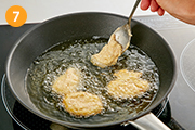 (5)をスプーンなどで丸めながらフライパンに入れ、揚げ焼きにする。