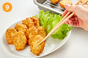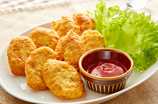 魚と豆腐でふんわり食感のヘルシーナゲット。1人前で約8個なので、見た目にもお腹にもボリューム感ある一品!