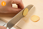 しょうがは薄切りにする。