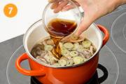 鍋にかつおだし(出汁)としょうがを入れて煮立てる。