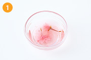 桜の塩漬けを水に浸し、塩抜きをする(約30分)。