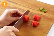 いちごはヘタをとり、半分に切る。