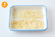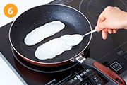 フライパンを低温に温めたら生地をのせ、スプーンなどで生地をのばす。