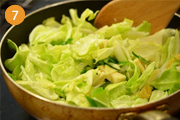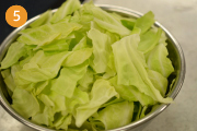キャベツは芯をとり手で適当な大きさにちぎる。