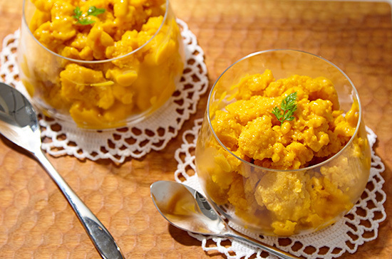 はちみつとかぼちゃの自然な甘さで体に優しいデザートです。食物繊維とタンパク質が同時にとれるのも嬉しいですね。