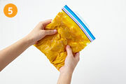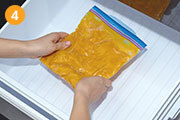 ジッパーバックに入れ、平らにならして冷凍庫で凍らせる。