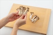 しめじは、石づきを切り落とし、手でほぐして一口大にする