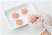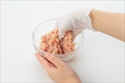 ボールに鶏ひき肉と③の玉ねぎ、生姜を入れ、しっかり混ぜる