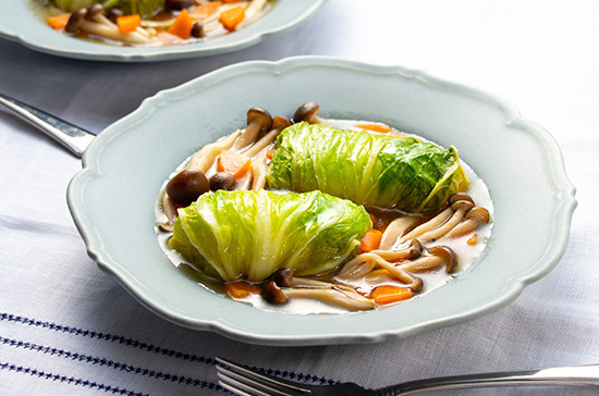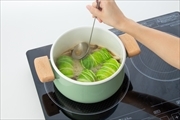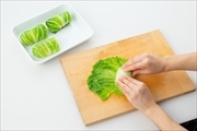 ⑤のミンチを①の白菜で包む(爪楊枝で端を止めると剥がれにくいです)