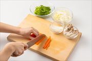野菜を全て、火の通りがよい千切りにして、水にさらしておく。しめじは一口大にほぐしておく。